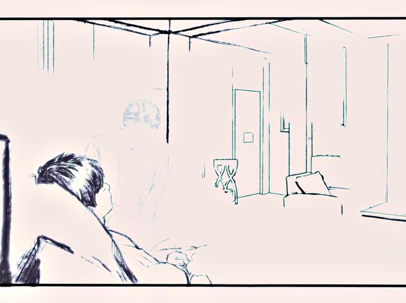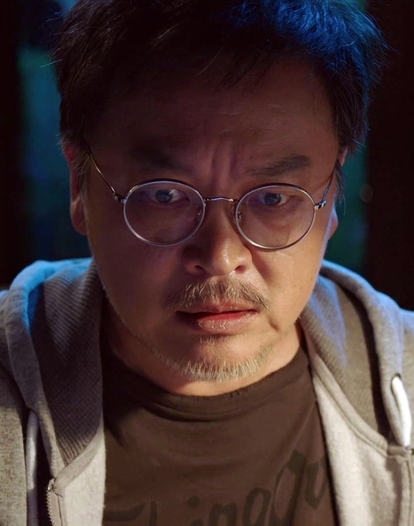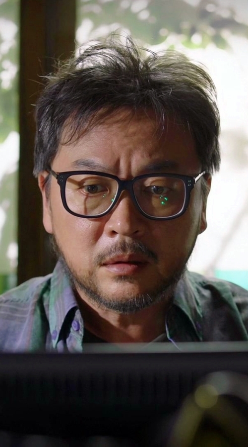 Soo-Bong's gaze is drawn downwards.