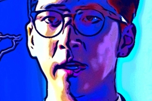 Casually dressed in a gray sweater, Soo-Bong draws on his tablet, focused.