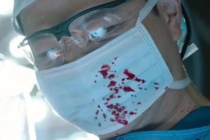 She cuts herself with it, bleeds, but doesn't care.