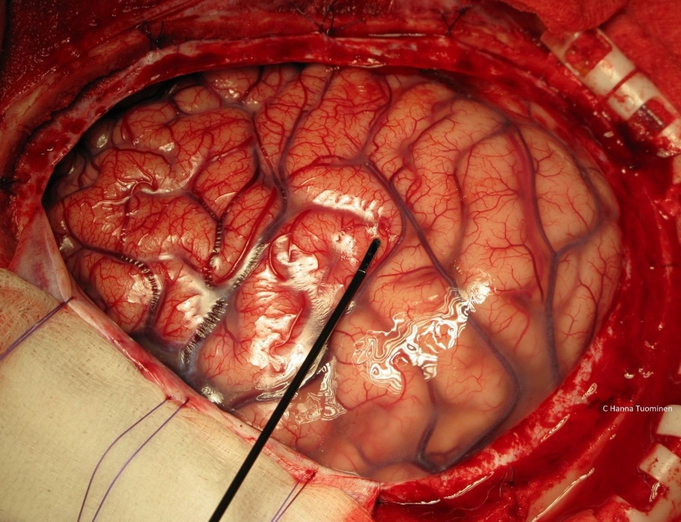 | - | Je débute une trépanation, en vue de diminuer la pression et d'évacuer les fluides. |